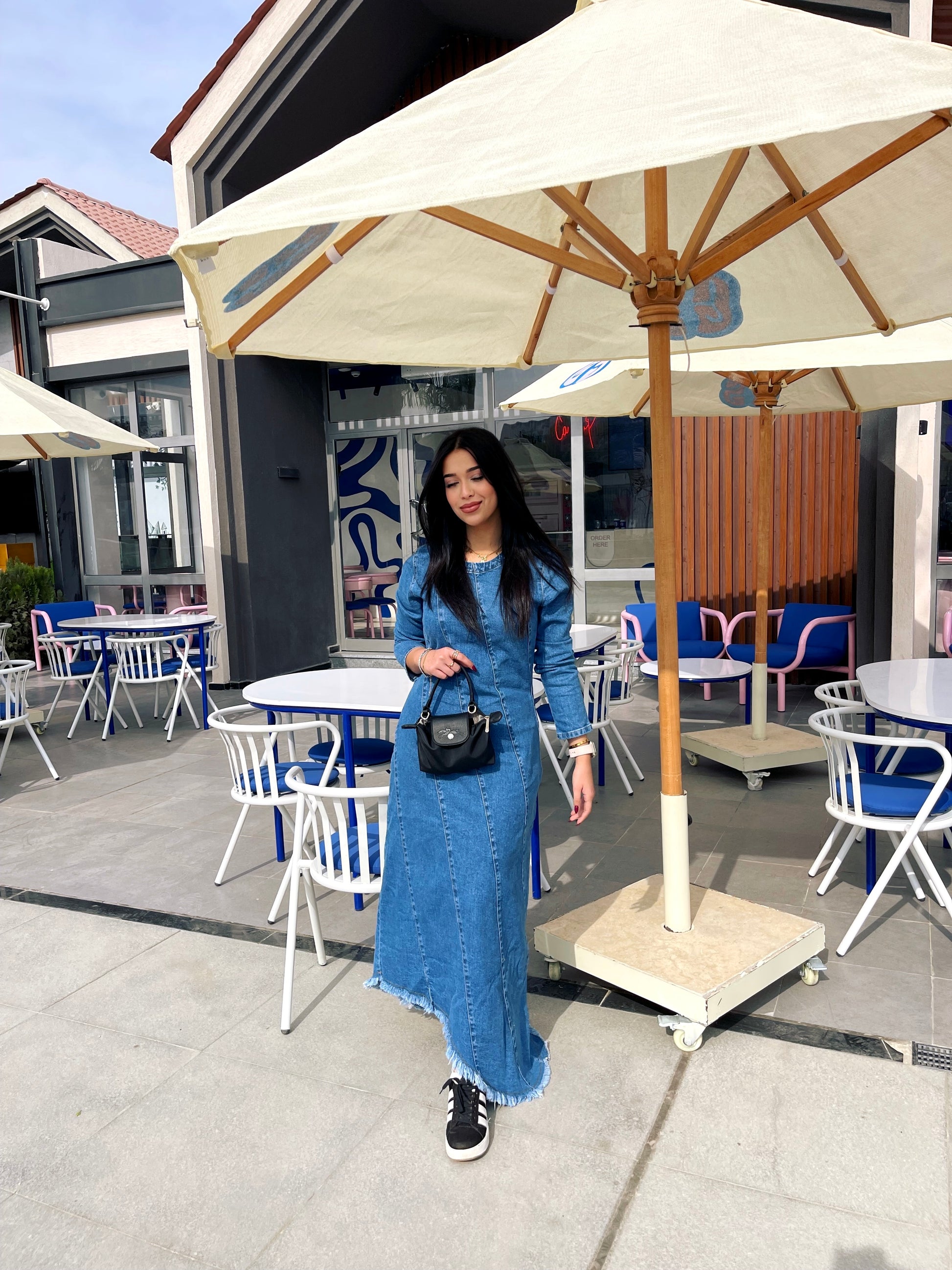 Crafted from high-quality denim, the dress balances structure and comfort, with subtle seam details that elongate the figure. The raw hem finish adds a trendy touch, while the versatile shades make it easy to dress up with heels or keep casual with sneakers.