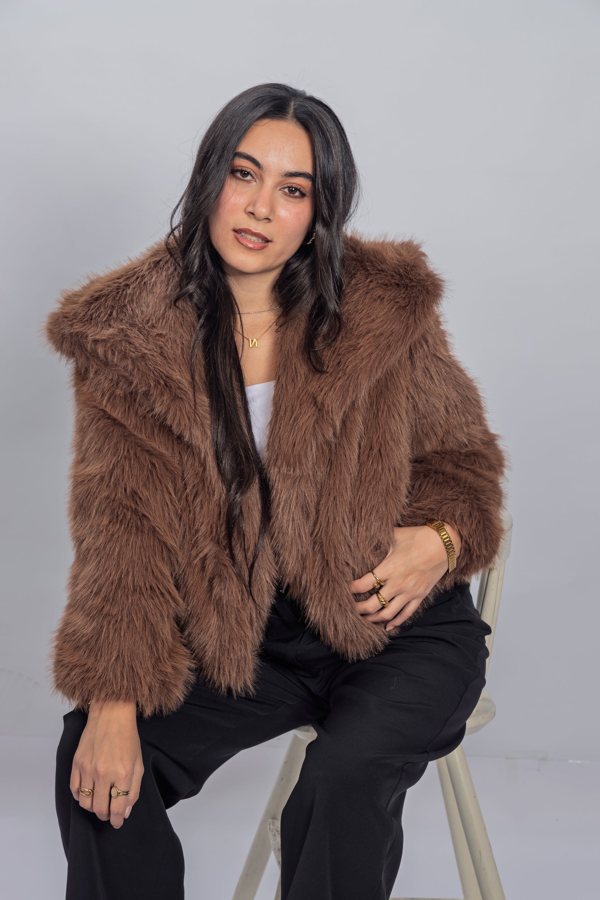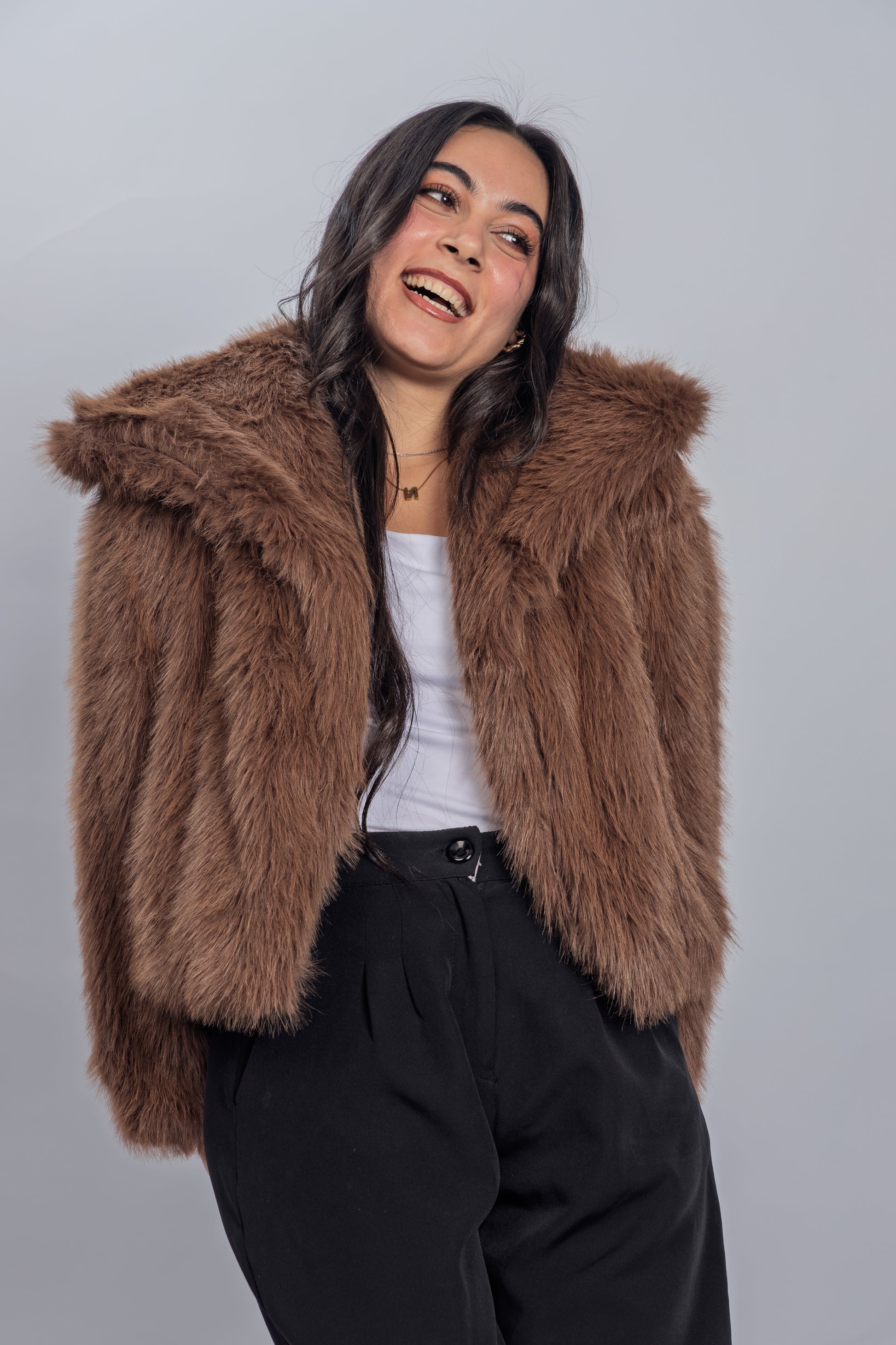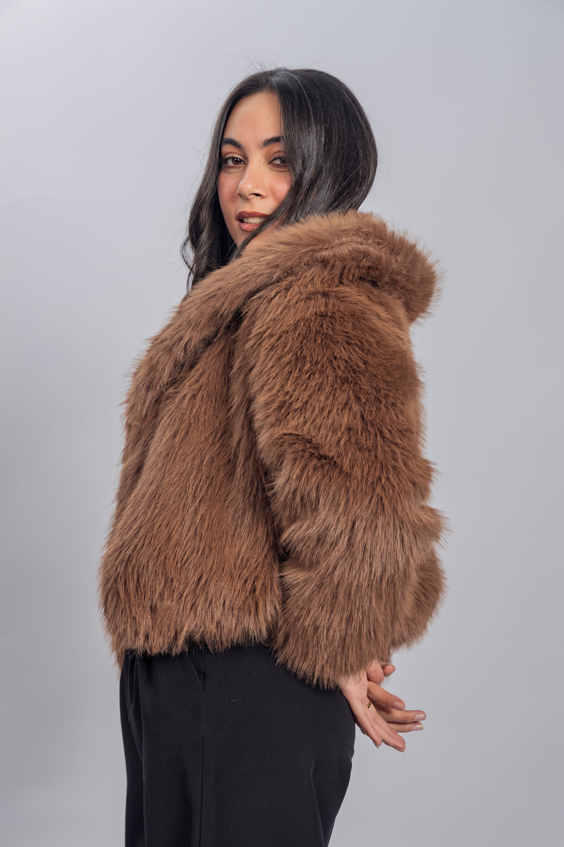 Wrap yourself in effortless warmth with the Mocha Fur Jacket.