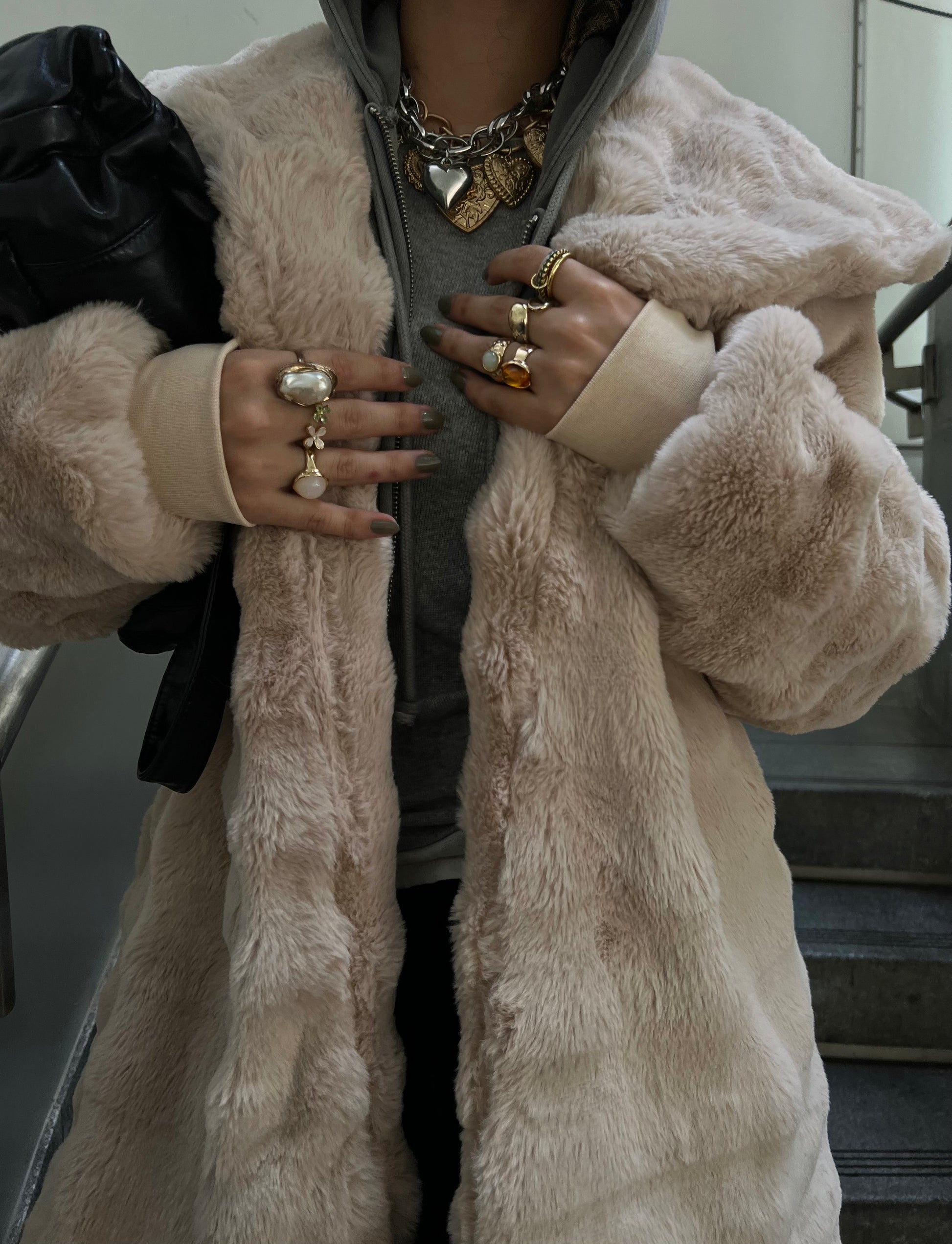 Designed with a plush, velvety texture, this coat brings effortless elegance to any winter look. Its oversized silhouette adds comfort and layering ease, while the neutral cream tone makes it a timeless wardrobe staple. Perfect for cold days, evening outings, or elevating your everyday style โ this jacket is all about cozy sophistication.